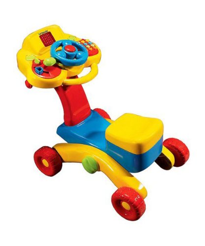 When it comes to learning, you never come to the end of the road with the 3-in-1 Smart Wheels. For the littlest babies, it's tummy time with the 3-in-1 Smart Wheels pull out panel with cool light-up dashboard, built-in cell phone, steering wheel, turn signals and horn. When your baby's ready to rock, the Smart Wheels easily covert to a rocker and the panel slides in front for continued learning and fun. Finally, when she's ready to roll, baby can climb aboard the 3-in-1 Smart Wheels and take her lessons on the go! Measures 8.2"L x 22"W x 16"D. Requires 3 "AA", included. Read more...