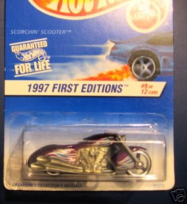 Mattel Hot Wheels 1997 First Editions 1:64 Scale Purple Scorchin Scooter Die Cast Motorcycle #009 Review